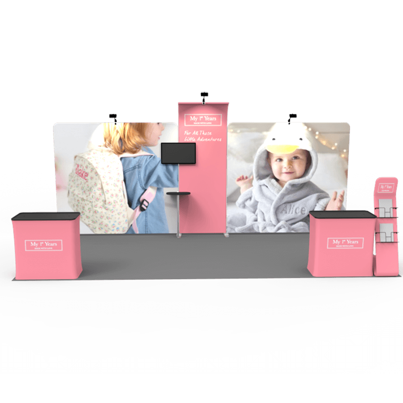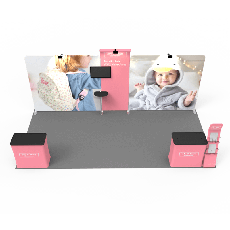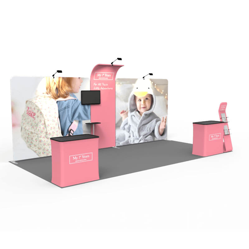 Are you prepared to make a big impact at your next business event? Fabric King Display can help! The DS20 inline tension fabric Trade Show Display includes everything you need to set up your exhibit booth. Fabric trade show displays made to order are at the forefront of portable display technology. These displays are portable and lightweight, with high-resolution graphics that will grab your client’s attention. Ideal for displaying your products and/or services at conventions and conferences.